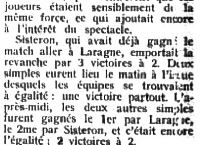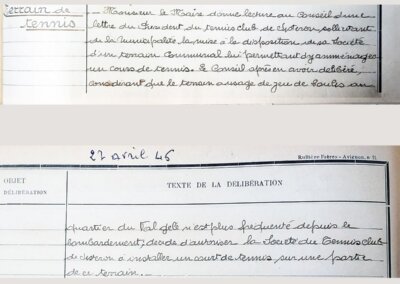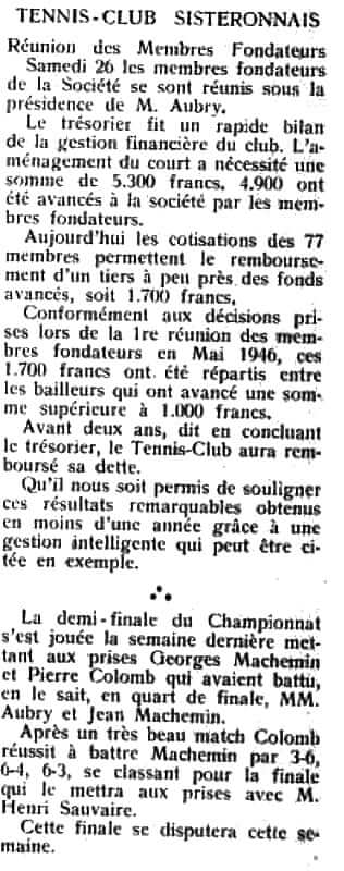 En avril 1946, Émile Paret, premier édile de Sisteron, donne lecture au conseil municipal d’une lettre du président du Tennis Club Sisteronais, Jean Aubry, sollicitant la mise à disposition d’un terrain communal, qui lui permettrait d’y aménager un court de tennis. Cette association née en 1924, soit quatre ans après la création de la Fédération française de Tennis (FFT), s’est donné pour but de favoriser localement le développement de ce sport que les hivernants anglais ont importé sur la Côte d’Azur à la fin du XIXe siècle.