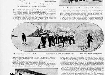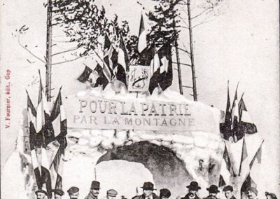 Les 11 et 12 février 1907 se tient à Montgenèvre, à l’initiative du Club alpin français (CAF), le premier concours international de ski jamais organisé en France. Un arc de triomphe en neige situé à l’entrée du village, du côté français, arbore la devise du CAF « Pour la patrie Par la montagne », alors qu’à l’autre extrémité de la localité un second arc de triomphe porte l’inscription « L’amour de la montagne abaisse les frontières » et est surmonté des drapeaux des pays représentés lors de cette compétition internationale. Les participants, civils et militaires, viennent non seulement de France, mais aussi de Grande-Bretagne, de Norvège, de Suisse, d’Autriche ou d’Italie, avec notamment la présence des chasseurs alpins (Alpini) italiens. Les relations entre la France et son voisin transalpin se sont en effet réchauffées.