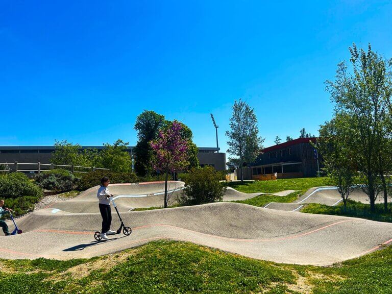 Mots clés: Piste, Pumptrack, Enfants, Jeunesse, Fille, Femme, Trottinette, Vélo, BMX