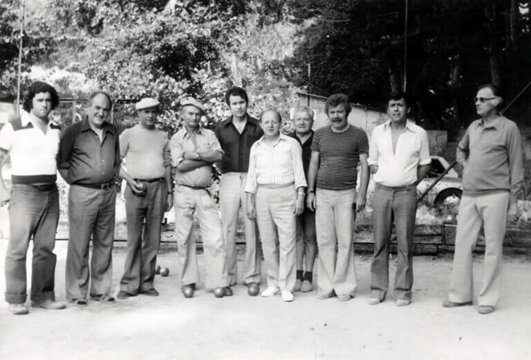 Cette photographie figurant plusieurs joueurs de boules lyonnaises a été prise en 1970 sur le terrain du Val Gelé à Sisteron. Au centre de la photo se trouve le futur maire de Sisteron Pierre Lanza (5e en partant de la gauche) qui sera élu en 1977. Le dernier personnage à droite est le président de la Grosse Boule Sisteronaise (GBS), Raymond Albert, qui a succédé au premier titulaire de la charge Jean Gravier.