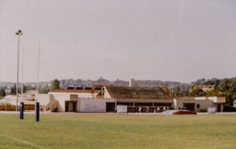 Cette vue présente le terrain de rugby du stade Louis Perdigon à Grasse.