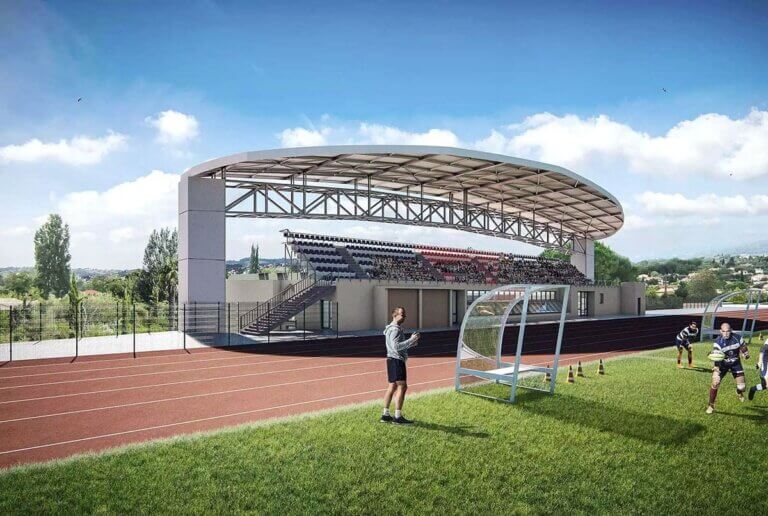 Une nouvelle tribune couverte et à la capacité augmentée est en projet au stade Louis Perdigon à Grasse pour une livraison en 2016. Elle est un élément d’architecture à part entière renforçant l’image sportive de la ville.