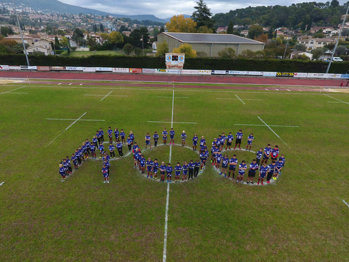 Le 20 novembre 2016, lors de l’inauguration de la nouvelle tribune couverte du stade Louis Perdigon à Grasse, les jeunes du Rugby Olympique de Grasse forment sur la pelouse les lettres ROG. Ce club familial accorde une grande importance à la jeunesse et possède depuis 1976 une école de rugby.
