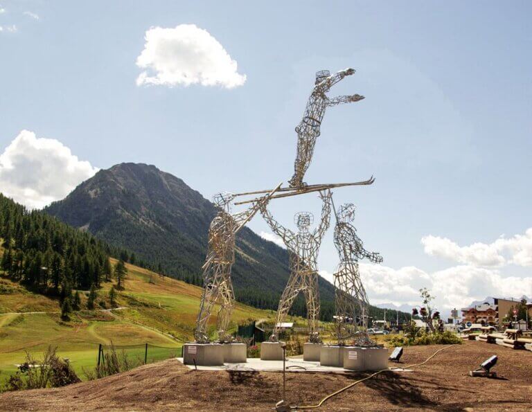 Sculpture L’Envol immortalisant le saut à ski du Suisse Joseph Keller en 1907