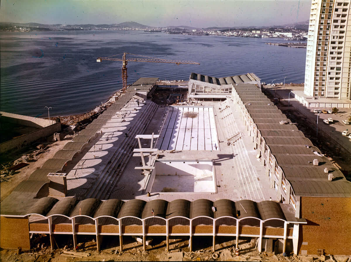 Cette vue aérienne de la piscine municipale du Port-Marchand à Toulon la montre en voie d’achèvement, peu avant son ouverture en 1972.