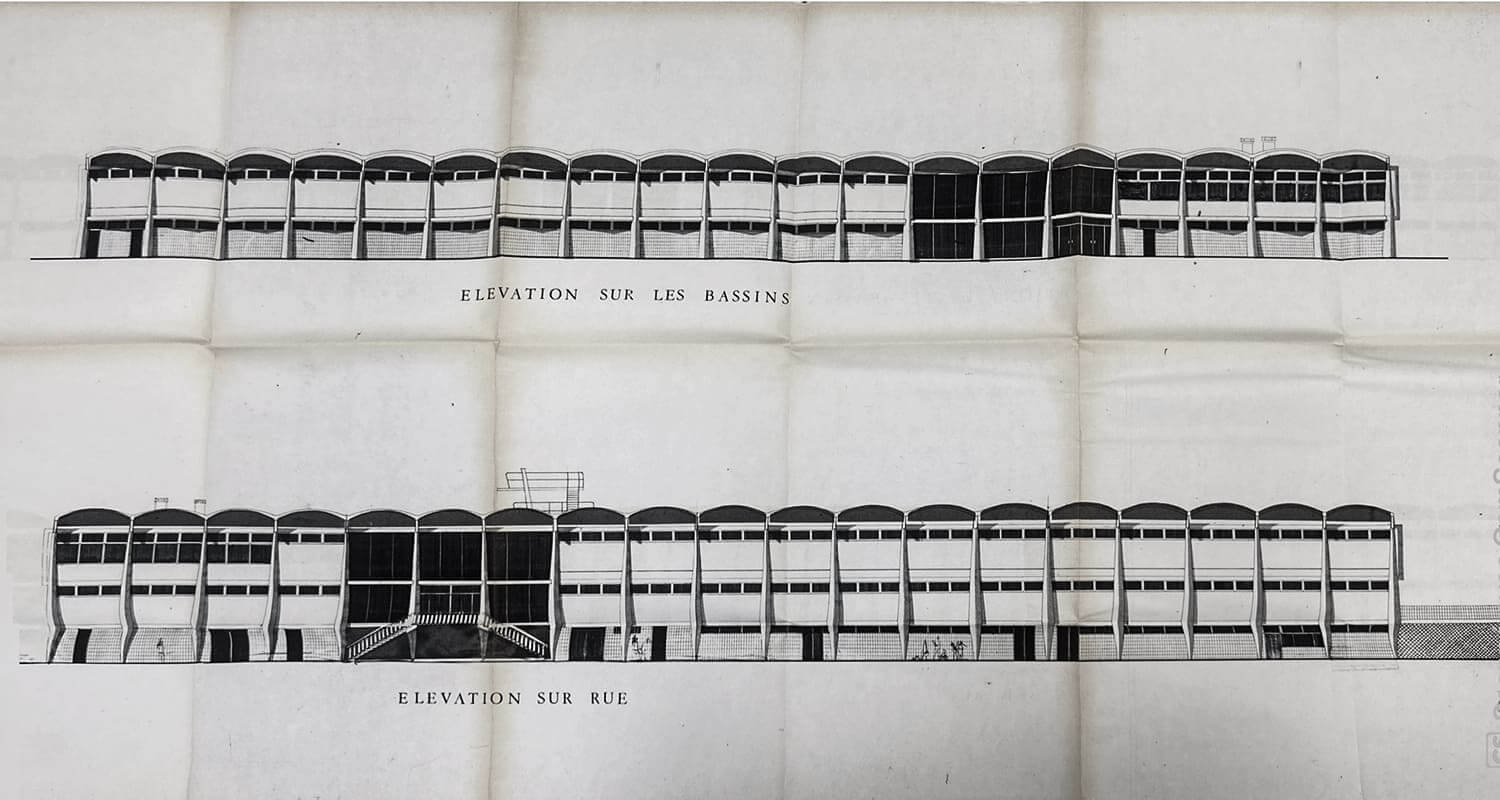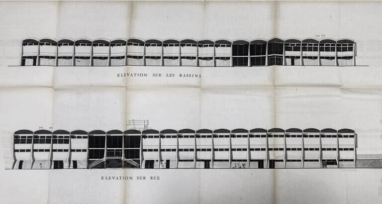 Ce plan d’élévation d’une des façades du stade nautique du Port-Marchand à Toulon, réalisé en 1966, augure de l’architecture remarquable de ce futur équipement sportif, inauguré en 1972.